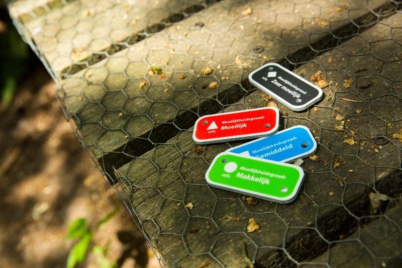 Op de bestaande MTB-routes komt er op de bewegwijzeringspaaltjes een extra bord bij met de moeilijkheidsgraad. Kuijt: “De borden met het internationale MTB-teken – de driehoek en twee rondjes – zijn de bewegwijzering van de route. De kleurcodering hangt daaronder. Volg je de kleurcodering én de bewegwijzering, dan voorkom je dat je onverwacht op een technisch zware route komt.”