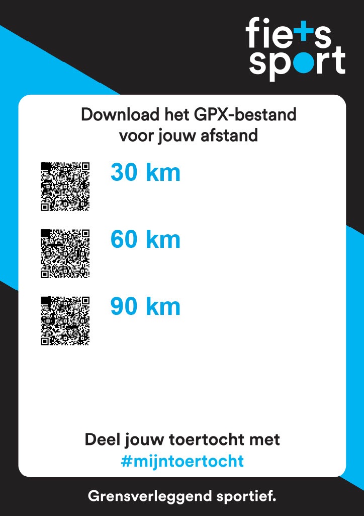 Hoe stel je routebestanden beschikbaar aan daginschrijvers van je toertocht? Met onze nieuwe functionaliteit download je eenvoudig een poster met een QR-code per afstand. Deze QR-codes geven deelnemers direct toegang tot de GPX-bestanden van de routes voor de verschillende afstanden van de toertocht. Je download de poster met QR-codes onder de instellingen van je tocht.
